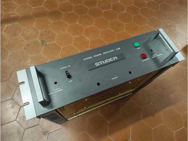Specifiche: 100 watts per canale 8Ω (stereo), 350W 8Ω (mono). Risposta in frequenza da 30Hz a 15kHz con una distorsione totale di 0.1%.