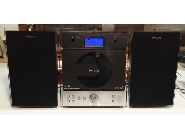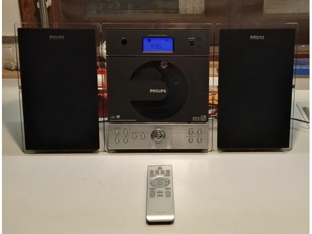 Mini Hi-Fi Philips MCM238-12 , dotato di radio Rds e lettore Cd MP3 , è stato testato e funziona bene sia la radio che il cd , è completo di telecomando.