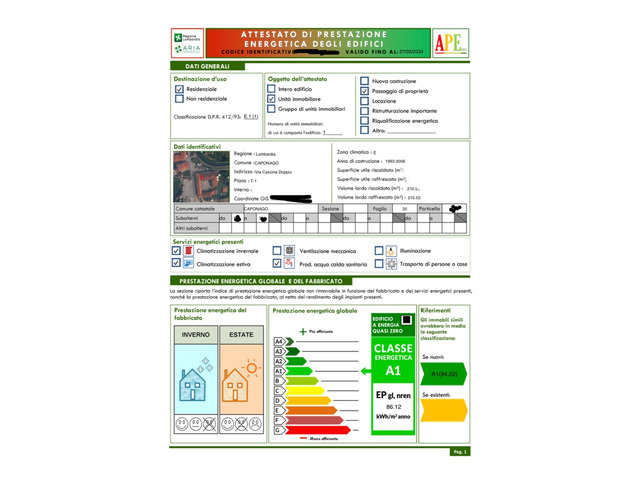 La metratura totale della casa è di circa 70Mq, il riscaldamento è autonomo con caldaia a gas nuova e climatizzatore. La classe energetica " A1 86,12 Kwh /Mq anno".