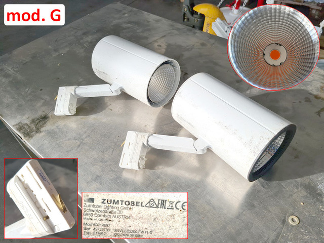 - mod. G 2 faretti di marca Zumtobel mod. 60714697 funzionante a 220/240v dim. 22X13cm h21/33cm, faro Ø13cm