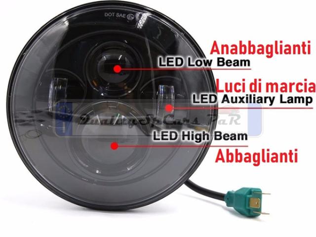 Fari di ultima generazione FULL LED da 7" con Lente in POLICARBONATO e SCOCCA in ALLUMINIO PRESSOFUSO , parabola interna di color NERO LUCIDO.