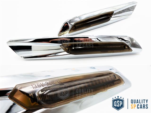X2 Frecce Laterali COMPLETAMENTE A LED per BMW, con scocca in ABS Cromata e Lente in Policarbonato Nera Fumé, 18 LED SMD.