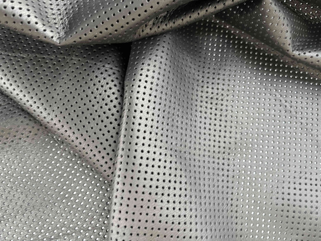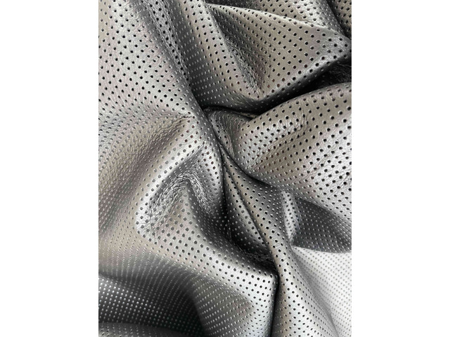 Pellame ovino nappa traforato per il settore Automotive, colore nero, mano morbida e pastosa per il rivestimento di volanti auto, cuffie cambio e molto altro.