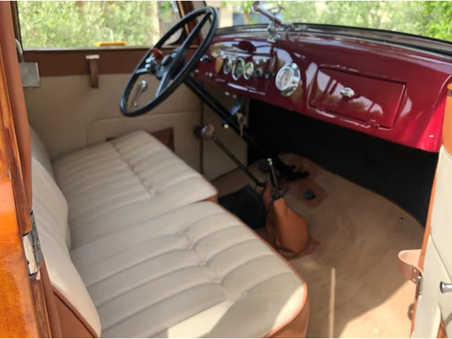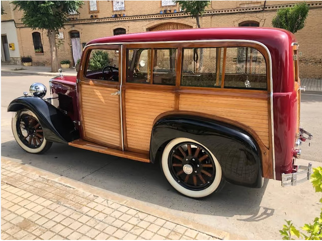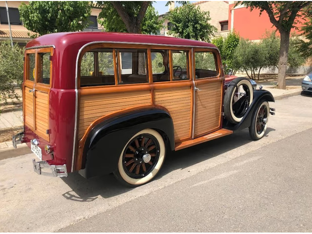 Studebaker Esrkine Woody del 1924 completamente restaurata. Questo bellissimo veicolo è stato rimodellato in Spagna negli anni '40 come un'attraente "woody" con i pannelli della carrozzeria posteriori in legno. Pochissimi veicoli di questo tipo si sono conservati così bene fino ad oggi. Apparteneva ad un proprietario terriero dell'epoca che lo utilizzava per trasportare gli operai dalla stazione ferroviaria ai terreni dove lavoravano. Non avendo eredi, il veicolo fu donato al locale Consiglio Provinciale, che lo mise all'asta, e fu acquistato da un collezionista che lo restaurò integralmente. Le fotografie sono fedeli alle loro condizioni. Il restauro del legno è stato eseguito da uno specialista in questo tipo di carrozzeria. I legni sono gli originali. La vernice e il sottoscocca del veicolo sono in ottime condizioni. La meccanica funziona bene e è aggiornata. Cromature e gomma perfette. Con documentazione originale spagnola aggiornata e con doppia immatricolazione; Conserva la targa originale di San Sebastian, ma è anche immatricolata come veicolo storico in Spagna. Tutto è approvato. Il venditore può aiutare ad organizzare il trasporto garantito, a spese dell'acquirente,