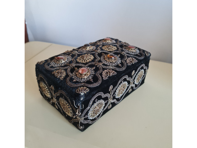 118,00 €Antico portagioie anglo-indiano in velluto cinigliato nero con ricami in filo dorato e perle didi Fausto