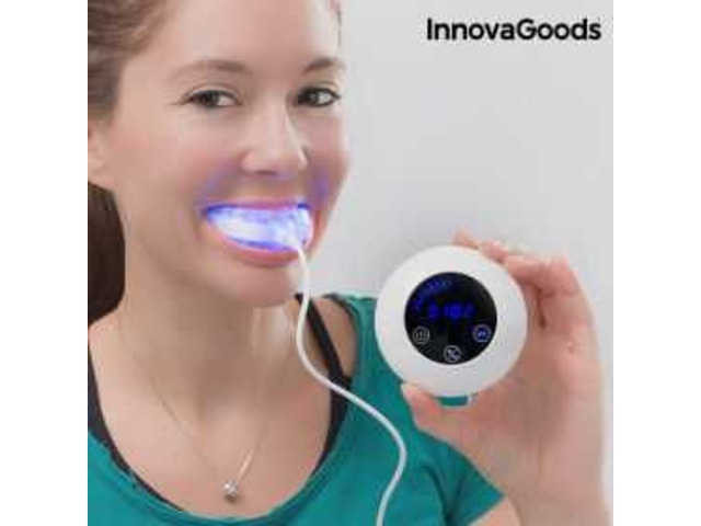 Sfoggia un sorriso perfetto con l'aiuto del nuovo sbiancante dentale professionale InnovaGoods Wellness Beauté! Un metodo semplice ed efficace per sfoggiare una dentatura perfetta. La luce fredda (blu) di questo dispositivo per sbiancare i denti rafforza e accelera l'effetto sbiancante del gel, ottenendo un risultato professionale ed eccellente.