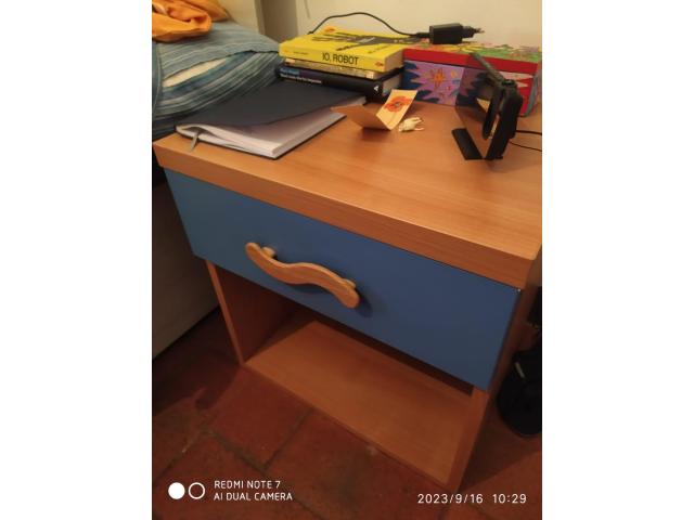 Comodino per cameretta, un cassetto, colore blu/noce, buonissime condizioni