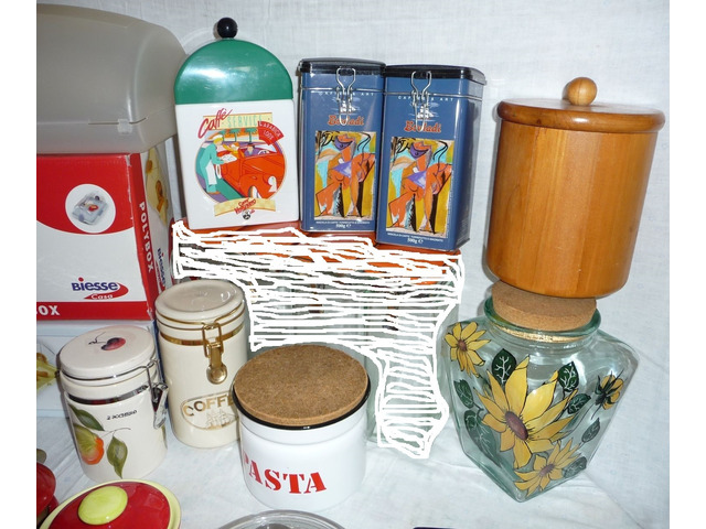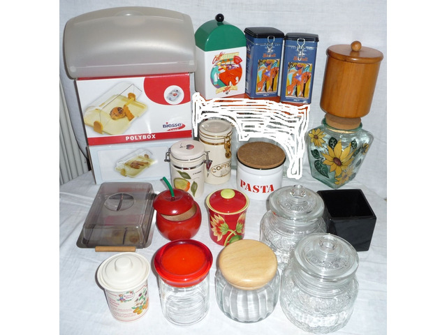 Contenitori, porta pasta, spaghetti, riso, cioccolatini, caramelle, dolci, biscottiera, tè, the, caffè, Vergnano, Bontadi, conserva pane e altro..