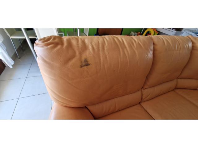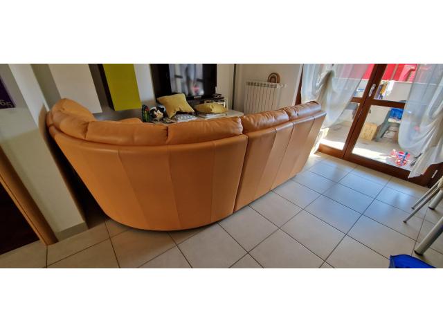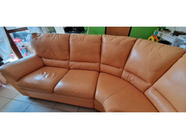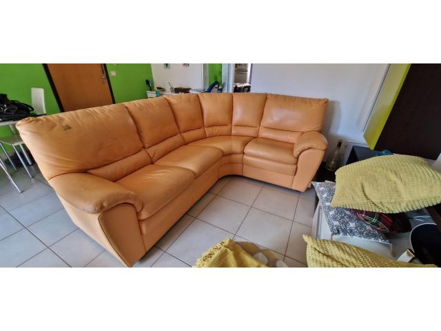 Vendo divano in pelle angolare 190x160 cm circa. Presenta qualche graffio sulla seduta e una piccola escoriazione sullo schienale. Il divano si compone di due parti che si incastrano.
