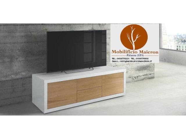 Porta tv in legno bicolore Bianco e Finitura Naturale Cod 256M