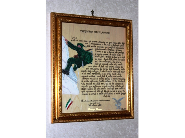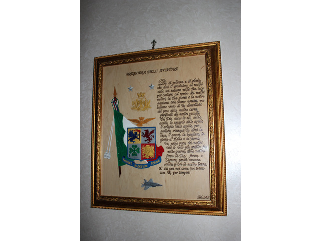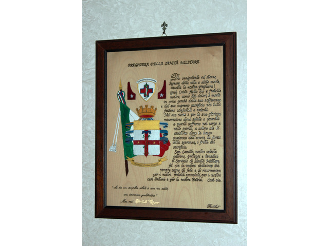 QUADRO RAFFIGURANTE STEMMA ARALDICO ,FREGIO E MOSTRINE DELLA SANITA' MILITARE DEL CELIO SU TRICOLORE CON PREGHIERA SCRITTA INTERAMENTE A MANO.L' IMMAGINE NON E' NE STAMPATA, NE TANTO MENO DECOUPAGE, MA DIPINTA CON COLORI ACRILICI E REALIZZATO SU SUPPORTO LIGNEO. IL CONTRASTO DELLE VENATURE DEL LEGNO LO RENDE VERAMENTE AMMIREVOLE E, CREDETEMI QUANDO VI DICO CHE A CASA VOSTRA O IN UFFICIO, NON PASSERA' SICURAMENTE INOSSERVATO. LA SPEDIZIONE AVVERRA' A MEZZO CORRIERE ESPRESSO CON NUMERO TRACCIABILITA' PACCO, ANCHE IN CONTRASSEGNO O CONSEGNA A MANO.