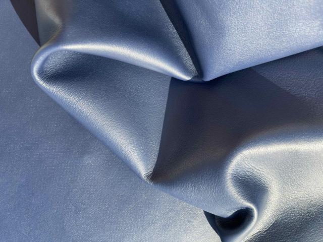 Pelle di vitello bottalato morbida al tatto di colore bleu, pieno fiore anilina di botte senza nessuna correzione in rifinizione, segni e imperfezioni non sono da considerarsi difetti, ma caratteristiche naturali del pellame pelle full grain, ideale per la produzione di borse, borselli, cartelle, zaini, portachiavi, legatoria e altri articoli di pelletteria.