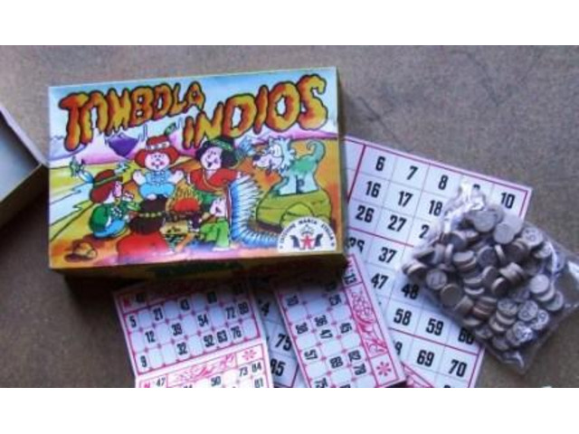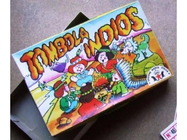 Vecchia tombola Indios con numeri in legno, ancora sigillata nel suo splendido scatolo disegnato,in pesante cartone originale anni 60, conservata accuratamente. :-: Pezzo unico e Originale, Eccellenti Condizioni poiché parte della mia Collezione privata in fase di smaltimento (Nella mia stanza anche Altri pezzi)