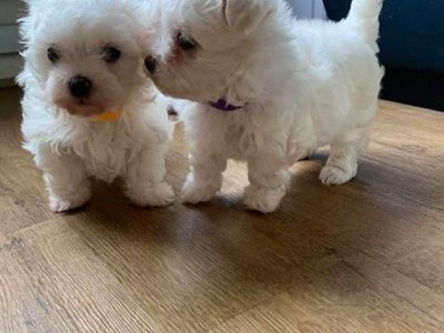 Cuccioli di maltese femmine e maschietti. I piccoli hanno 3 mesi e vengono già svezzati e sverminati con prima vaccinazione e libretto sanitario. I genitori sono di taglia TOY. Mamma e papà maltese. Sono di colore totalmente bianco. Cedo solo a persone realmente interessate.