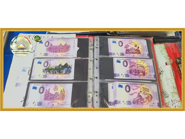 Monete antiche e moderne, francobolli, banconote italiane ed estere, decorazioni militari, cartoline, storia postale, gettoni, tokens, stampe, orologi, folder, bollettini illustrativi, interi postali, album, immagini sacre, carte telefoniche, quotidiani, locandine, libri, fumetti, figurine, calendari militari, penne da scrittura, pins, spille, oggettistica varia, accessori e raccoglitori per collezioni.