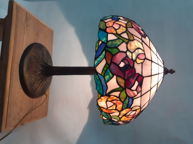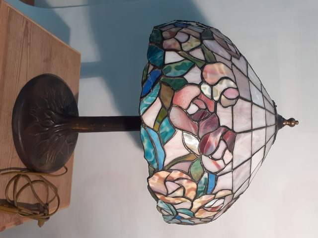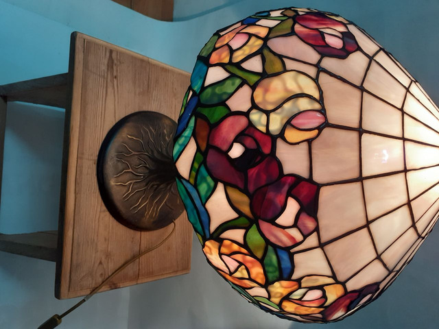 Lampada Abat Jour TIFFANJ rosso con inserti in ottone Peso 6 kg. Altezza 58 cm. Diametro 40 cm.