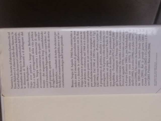 - BRUNO VESPA "STORIA D'ITALIA DA MUSSOLINI A BERLUSCONI", Mondadori editore;